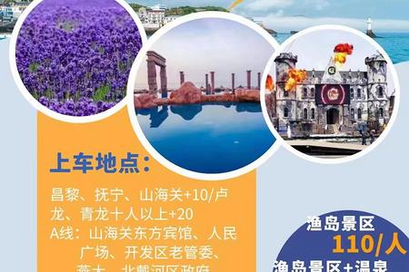 接团后游览【渔岛室外温泉】度假村位于秦皇岛市北戴河新区,居中国最美的八大海岸之一黄金海岸中部。因盛产鱼、虾、参、贝等海产品故名渔岛。是国家级农业休闲、度假娱乐、温泉养生综合性度假景区。 景区以“欣赏沙雕乘游船,滑沙滑草冲水浪,泡着温泉看大海,住着别墅吃海鲜”为主题,经典项目:摩天轮,海盗船,旋转木马,双人飞天,魔幻水寨、环流河、滑沙、滑草冲浪场,跑马场,射击场,沙滩摩托,卡丁车,飞车走壁、水上飞人等。渔岛海洋温泉泉水来自1300米以下海底岩层,水温43度。“泡着温泉看大海”,渔岛的海滩具有沙细、滩缓、水清、潮平;一流周到的服务,让您尽情享受温泉带来的惬意。沙滩上有沙滩排球、足球、快艇、摩托艇等项目。真正的让您感受到金色的沙滩和湛蓝的大海,以及薰衣草的芳香与浪漫。